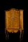 Mobile a due corpi di forma mossa lastronato in radica di noce e intarsiato in