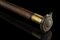 Bastone in malacca con un accendino di forma circolare nel pomolo e ghiera in o