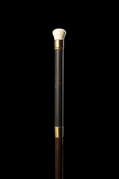 Lotto 596 | Bastone "da picnic" in faggio con presa in avorio tornito celante un coltello e