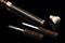 Bastone "da picnic" in faggio con presa in avorio tornito celante un coltello e
