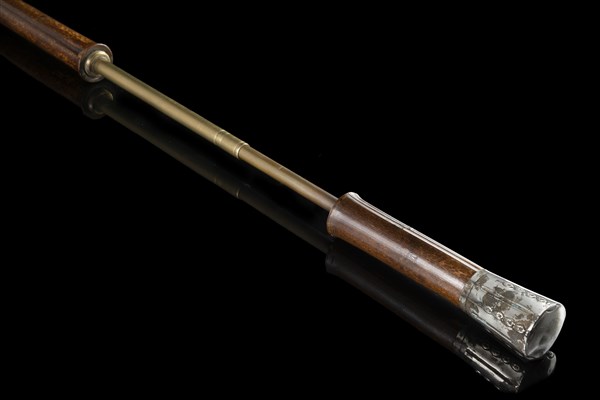 Bastone in bambù con presa in metallo argentato e fusto regolabile in altezza (L. cm 94)