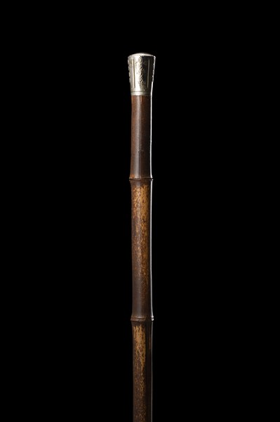 An adjustable bamboo walking stick with a silver plated handle (L. cm 94)