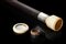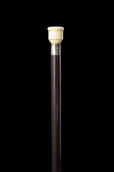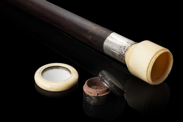 Bastone da signora in malacca con presa in avorio tornito con uno specchio cela