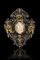 Cornice in argento con teste di cherubini e dettagli dorati. Al centro placca i