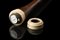 Bastone in malacca con pomo in avorio tornito con porta orologio da tasca con n