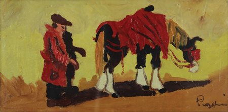 Ragni Basso Senza titolo olio su tavola, cm 19x40 firmato in basso a destra