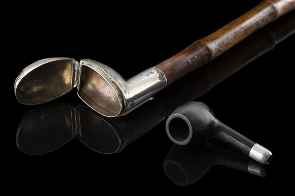 Bastone porta pipa in bambù con presa e ghiera in argento. Punzoni di Birmingha