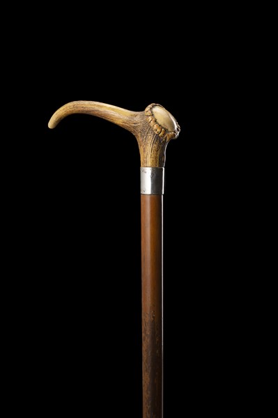Bastone "da fattore" in mogano con presa in corno di cervo celante palettina pe