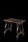 Tavolino in legno intagliato con gambe a lira sagomate, montanti torniti e trav