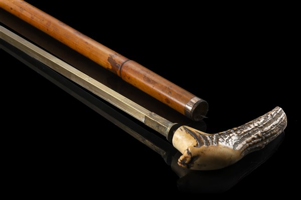Bastone in bambù con presa in corno di cervo celante ippometro per misurare il