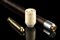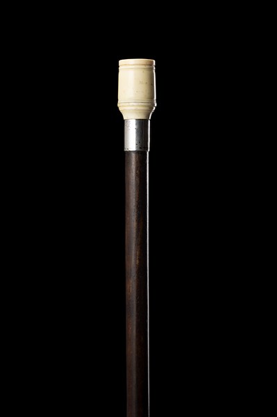 Bastone in malacca con pomolo in avorio tornito svitabile celante bilancia in o