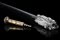 Bastone da prelato in legno ebanizzato con ghiera in argento decorata da tre angeli e aspersorio in vermeille. Secolo XIX (L. cm 95)