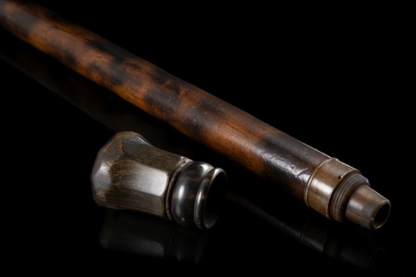 A blowgun walking stick. Horn mount and toe cap. 19th century (L. cm 105) (defects)