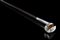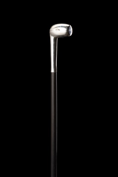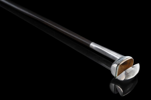 Bastone da fumatore in ebano con pomolo portapipa in argento e vermeille. Punta