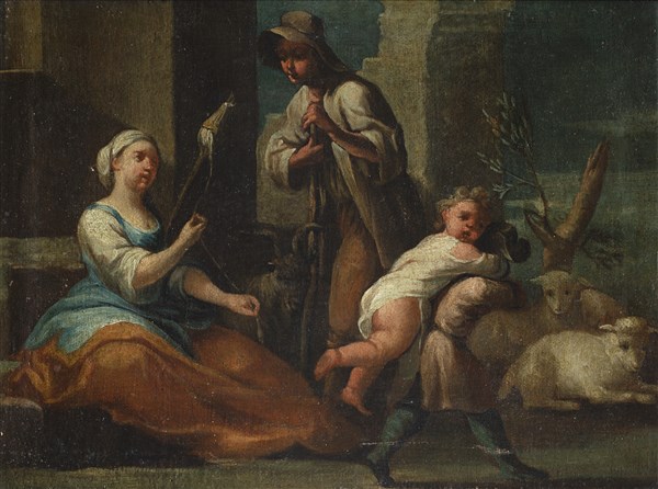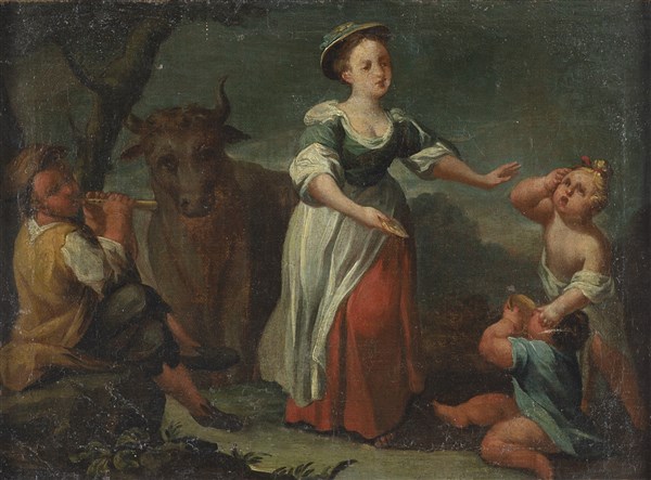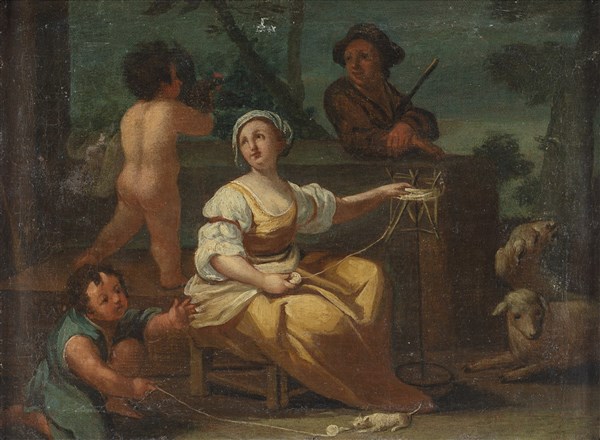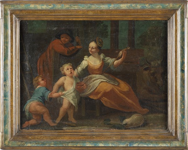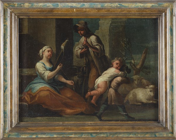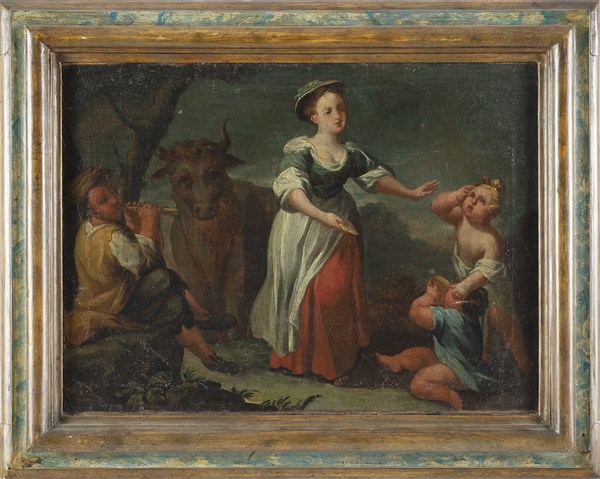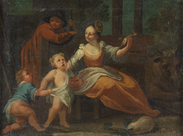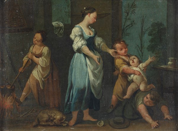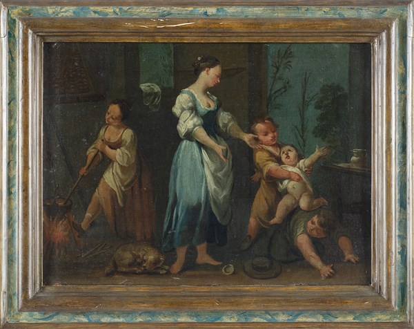 Scuola emiliana del secolo XVIII Scene di vita popolare Cinque dipinti ad olio