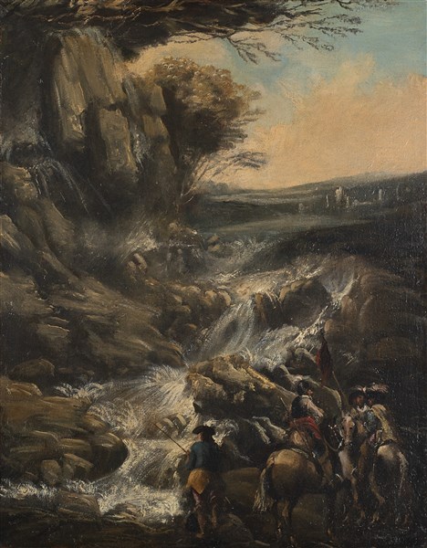 Seguace di Antonio Maria Marini, fine del secolo XVIII Paesaggio con cascata e