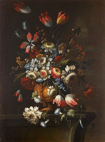 Scuola del secolo XVIII Vaso di fiori Olio su tela, cm 102x74,5 In cornice (re