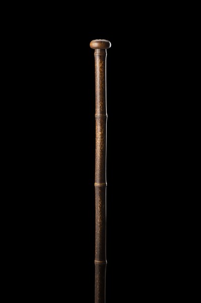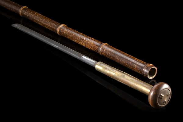 A bamboo cheese taster walking stick hiding a brass rod in the knob. Metal toe cap (L. cm 91)