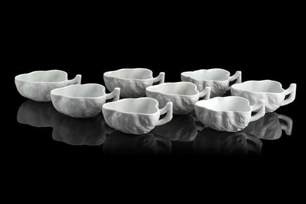 Manifattura di Ginori, secolo XIX. Lotto di otto cremiere in porcellana bianca