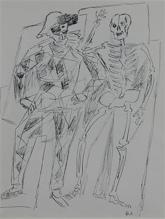 Severini Gino Metamorfosi di Arlecchino, (1955 ca) china su carta, cm. 27x21,2 siglata in basso a destra, certificato di autenticità ed archivio su fotografia di Romana Severini Brunori con timbro Galleria la Scaletta, provenienza Collezione Severini Brunori