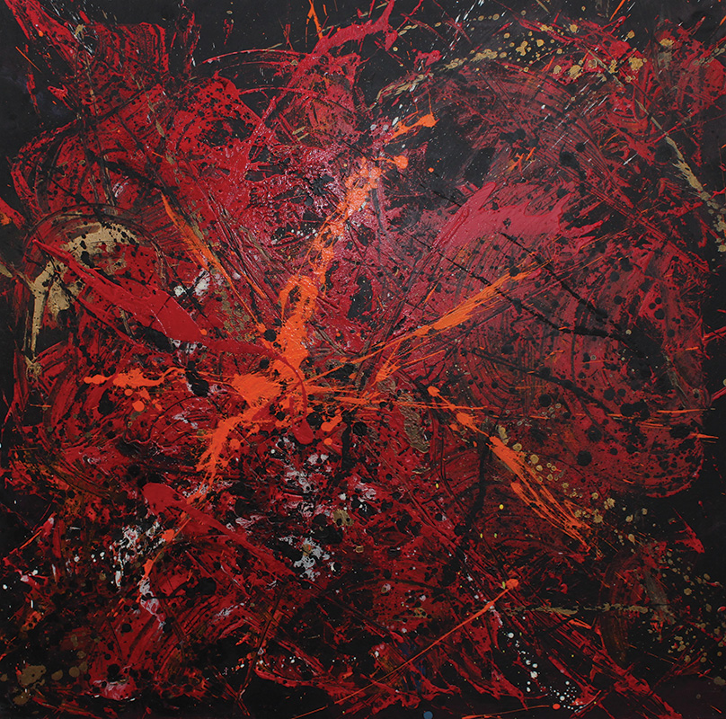 "Flycat" Massironi Luca Fire, 2011 tecnica mista su tela, cm. 100x100 firmata, datata e intitolata al retro, certificato di autenticità su fotografia di Alessandro Mantovani Art Dealer