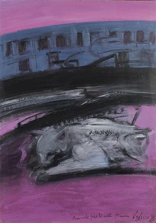 Vaglieri Tino Animale ferito nella strada, 1996 olio su carta applicata su tela, cm. 70x50 firmato, datato e intitolato in basso a destra ed al retro, pubblicato su catalogo al n. 65 "Tino Vaglieri pittore di idee" Allimandi & c Editore, stampato nel 2009
