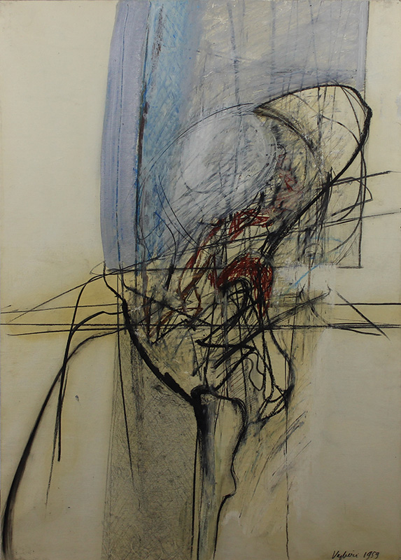 Vaglieri Tino Figura, 1959 tecnica mista su carta applicata su tela, cm. 70x50 firmata e datata in basso a destra