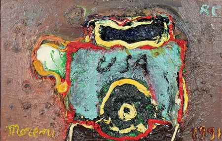 Moreni Mattia USA RC, 1991 colori su tela, cm 40x62,5 firmato in basso a sinistra, autentica dell'artista su fotografia datata 1991 ottobre