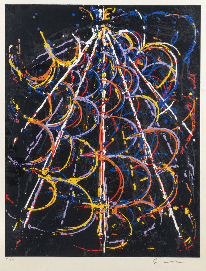 69x49 foglio, 52x40 litografia con applicazioni di colore es. 146/150