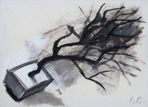 FABRIZIO PLESSI Reggio Emilia 03/04/1940 Progetto video installazione, (1994) tecnica mista su carta intelata cm. 23,5x33, sigla dell'artista in basso a destra.