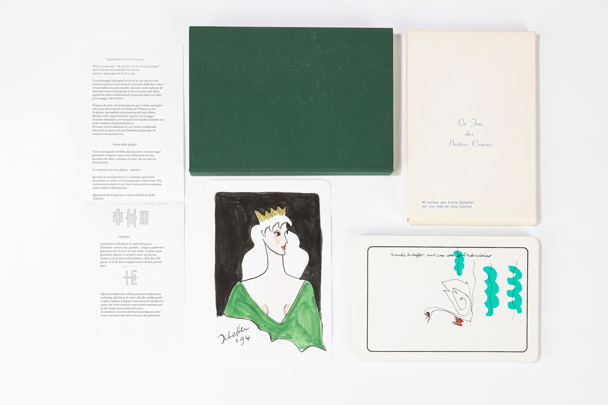 scatola contenente 40 carte da gioco e un acquarello su cartoncino di Emilie Scheffer