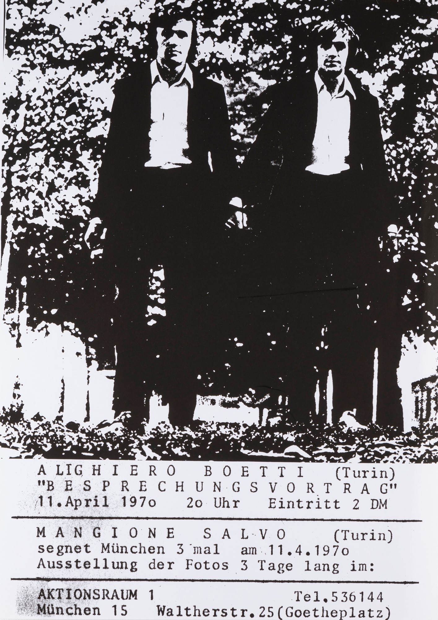 Poster edito inoccasione dell’azione «Besprechungsvortrag» tenutasi l’11 Aprile 1970 a Monaco durante le manifestazioni dell’Aktionsraum 1.