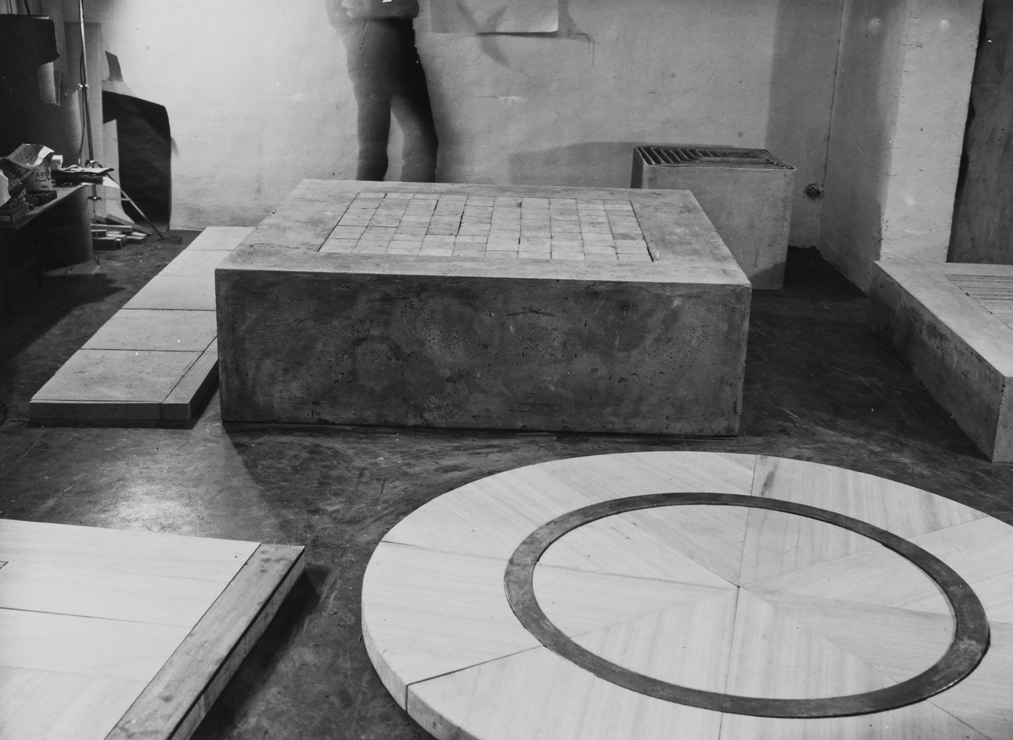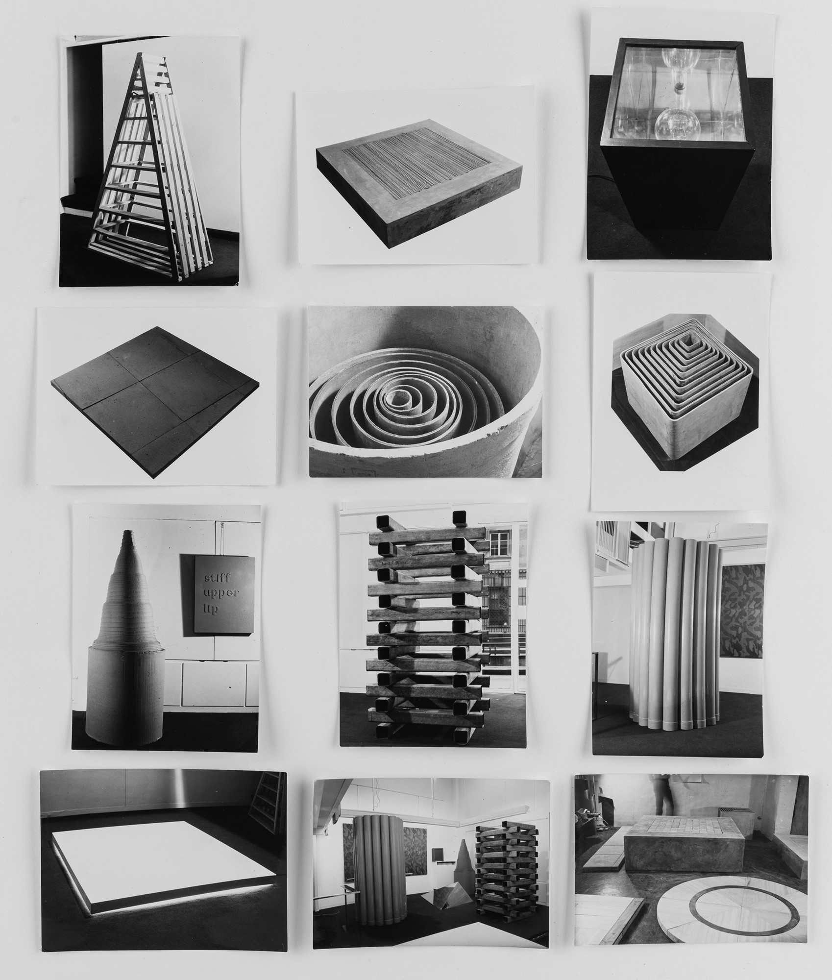Raccolta di 12 fotografie originali in bianco e nero con opere giovanili di Alighiero Boetti realizzate nella seconda metà degli anni '60. La raccolta proviene da un nucleo più ampio di fotografie scattate dallo studio Bressano di Torino da autore ignoto.