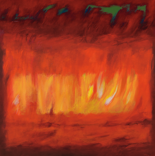 SERGIO ZEN Valdagno (Vi) 24/11/1936 Il principio, 2001 olio su tela cm. 60x60, firma in basso a destra, titolo, firma anno ed archivio n° 061201 dell'artista al retro, esposto presso la Galerie Alten Rathaus Prien Am Chiemsee (Germania), 2001, dichiarazione d'autenticità dell'artista su foto.