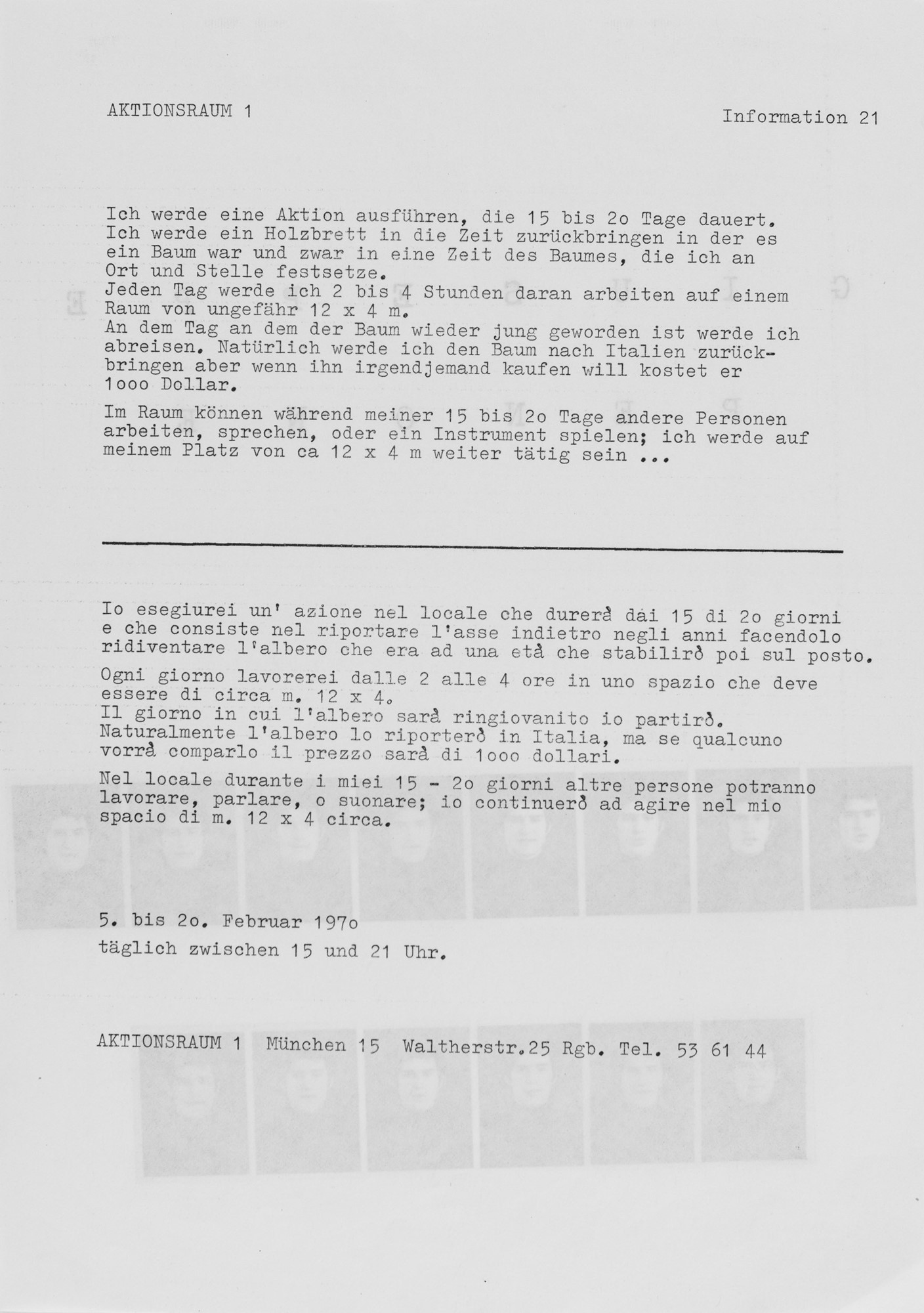 Volantino originale edito in occasione dell'Aktionsraum 1, tenutasi a Monaco dal 5 al 15 febbraio1970