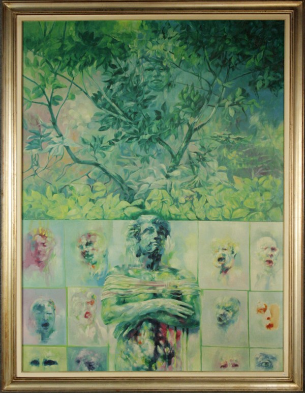 Firmato, datato. SODO VITTORIO - Nato a Lecce nel 1938. Vive e lavora tra Lecce e Pietrasanta (Lucca). Grande dipinto olio su tela intitolato ''IDENTITA' ''. In cornice. Mis. Lung. cm. 150 Alt. cm. 200 ca.
