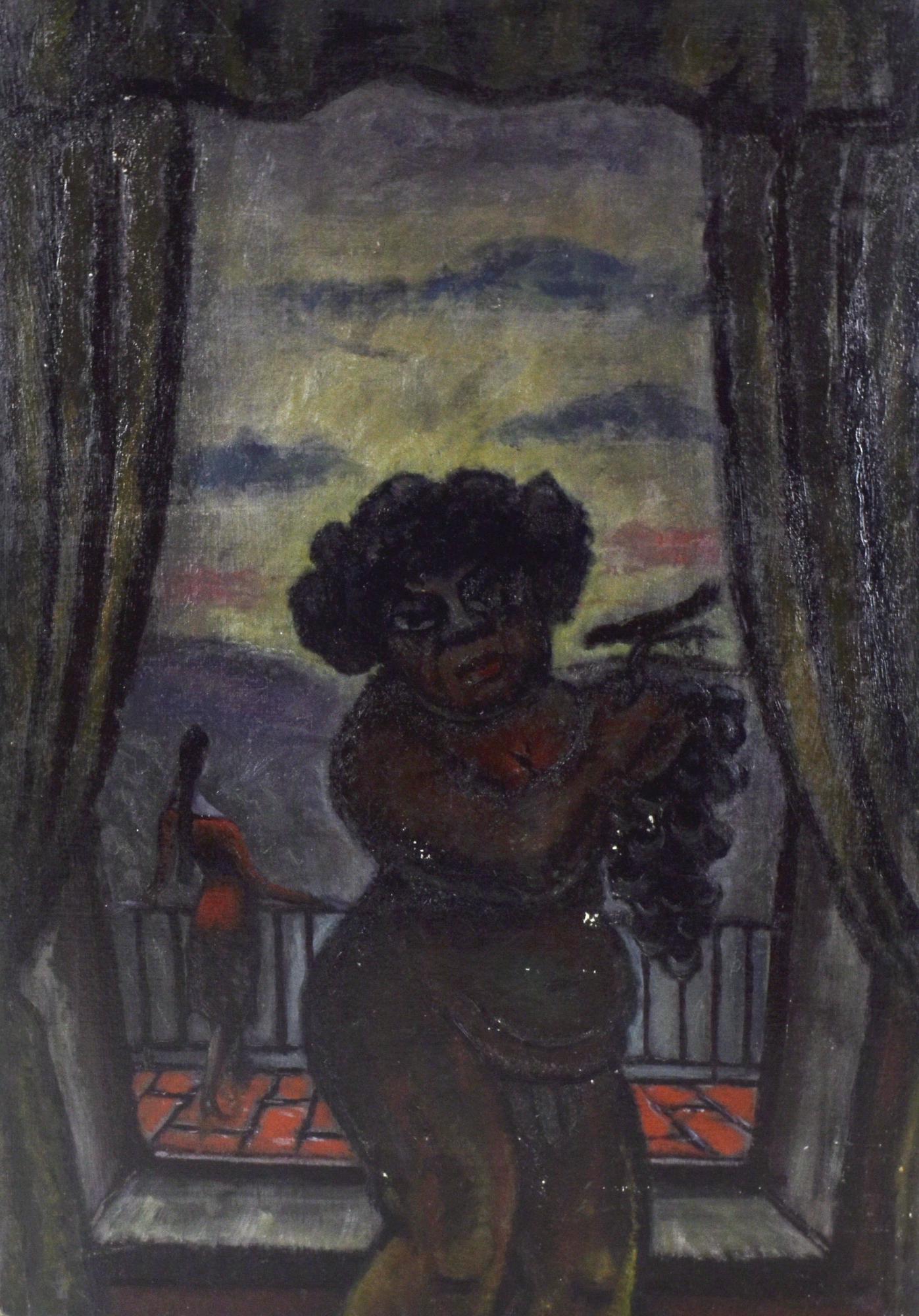 Enrico Allimandi BACCO E LA RAGAZZA olio su cartone telato, cm 70x50 eseguito...
