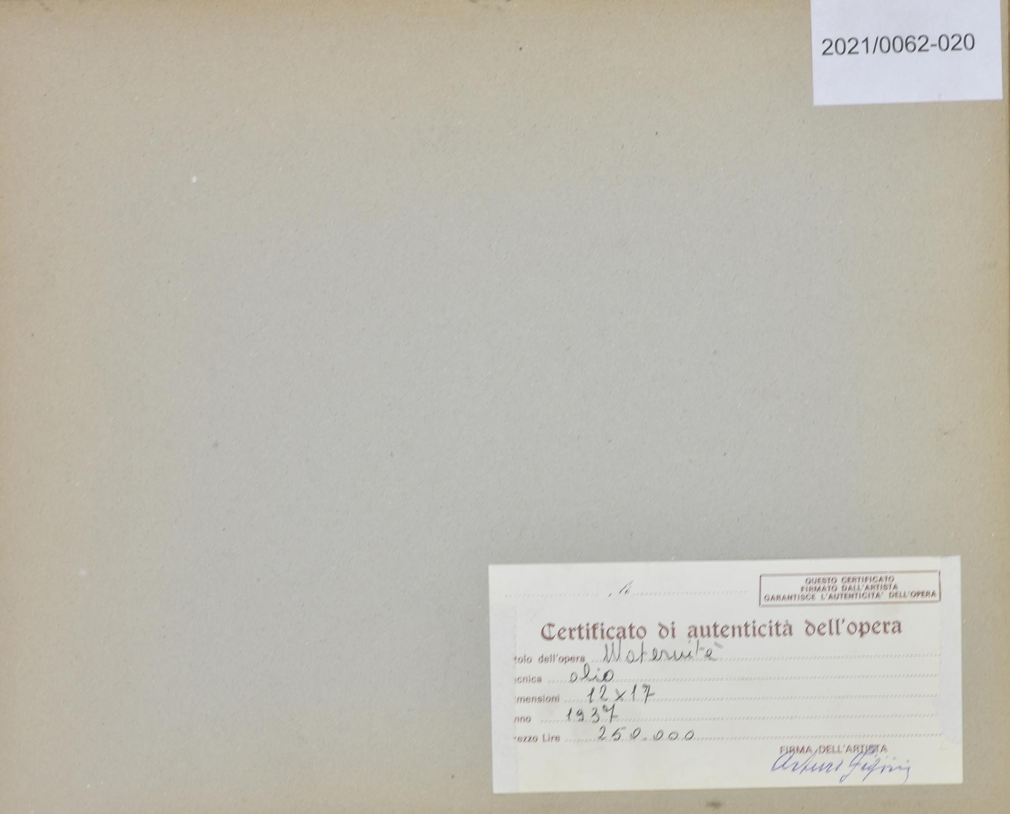 sul retro: etichetta dell'Atelier dell'Artista