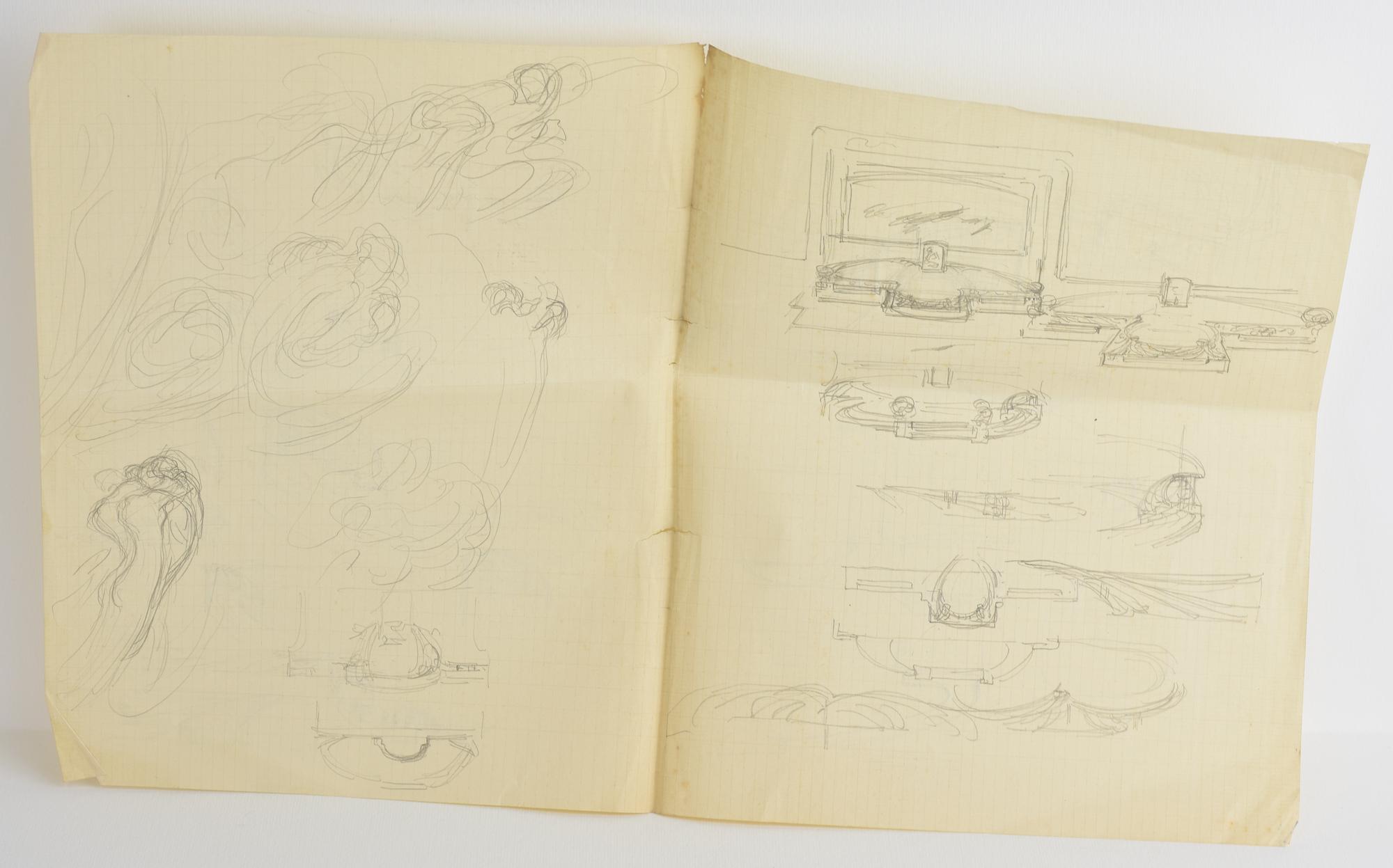 sul retro: numerosi schizzi a matita