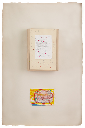 NICOLA DE MARIA Foglianise (Bn) 06/12/1954 Purezza, 1999-2000 tecnica mista, collage e applicazioni su carta cm. 75x50x6,5; firma, titolo e anno al retro, etichetta della Galerie Lelong (Paris) al retro.