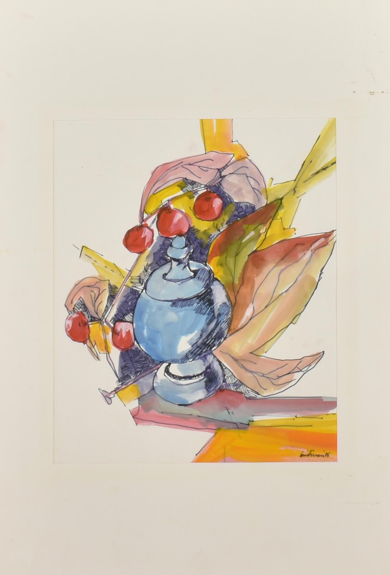 Loris Ferrari NATURA MORTA acquerello e china su carta, cm 30x25 firma e data...