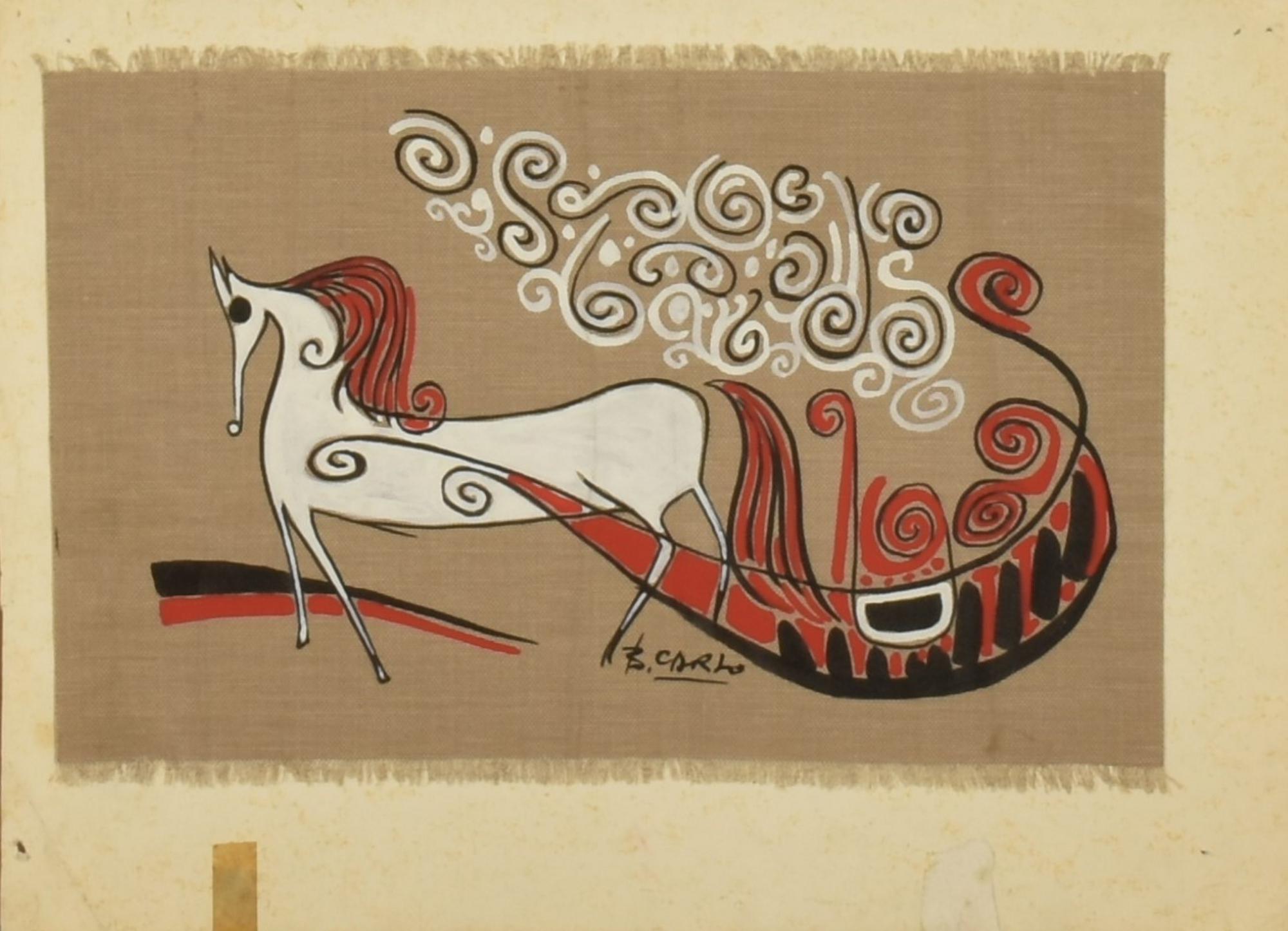 B. Carlo CAVALLO tempera e china su tessuto applicato su cartone, cm 19x30...