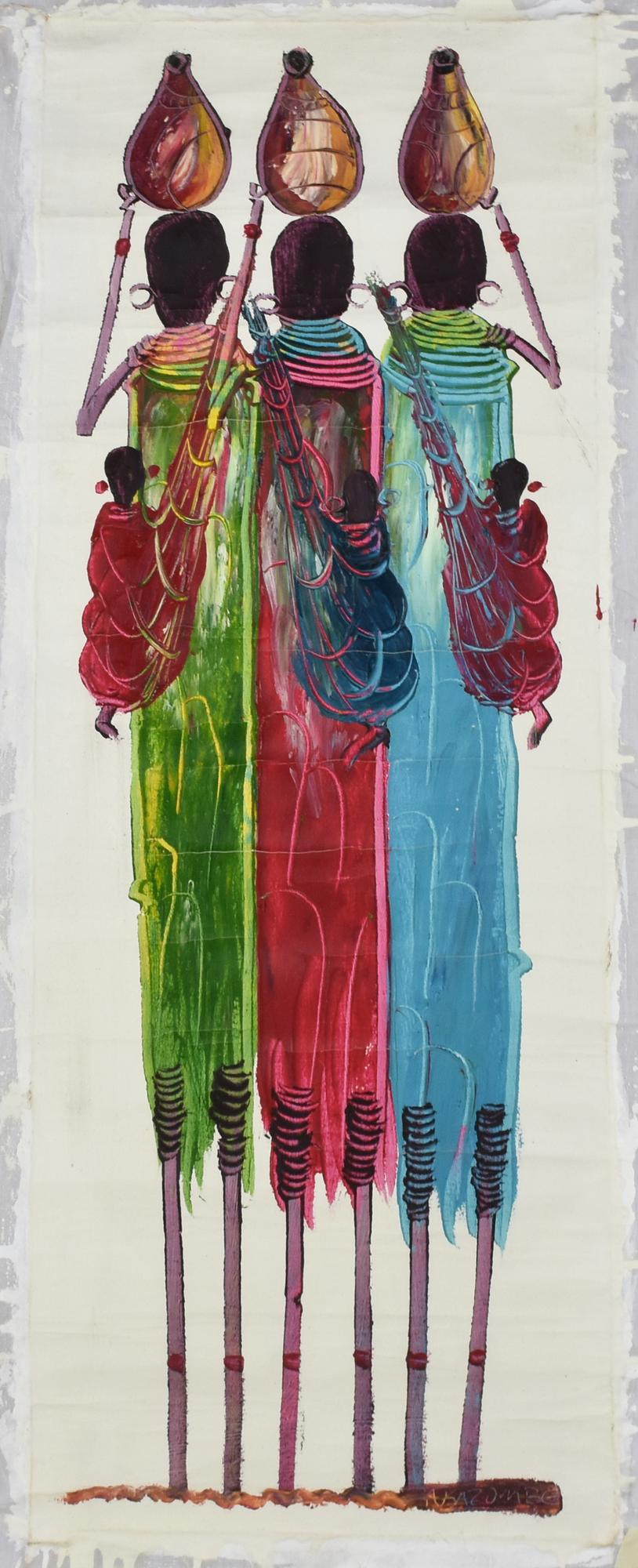 Lotto 152 | Ignoto LE PORTATRICI D'ACQUA smalto su tela, cm 82x30 firma Craquelure diffuso