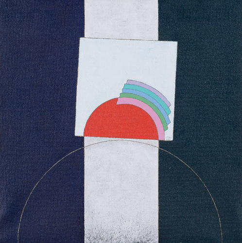 EUGENIO CARMI Genova 17/02/1920  Personaggio, 2005 acrilici su tela di juta cm. 60x60, firma, titolo, anno ed etichetta della Galleria Overtime Art (FO) al retro, dichiarazione d'autenticità dell'artista su foto.