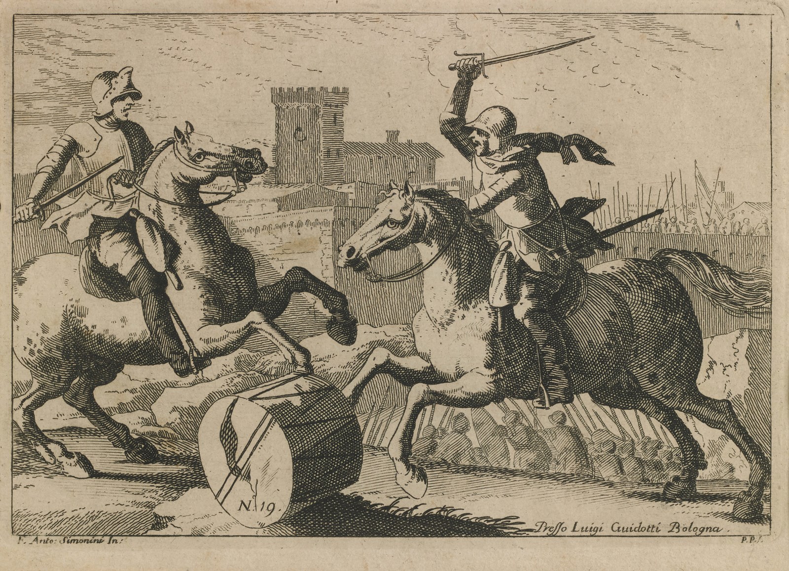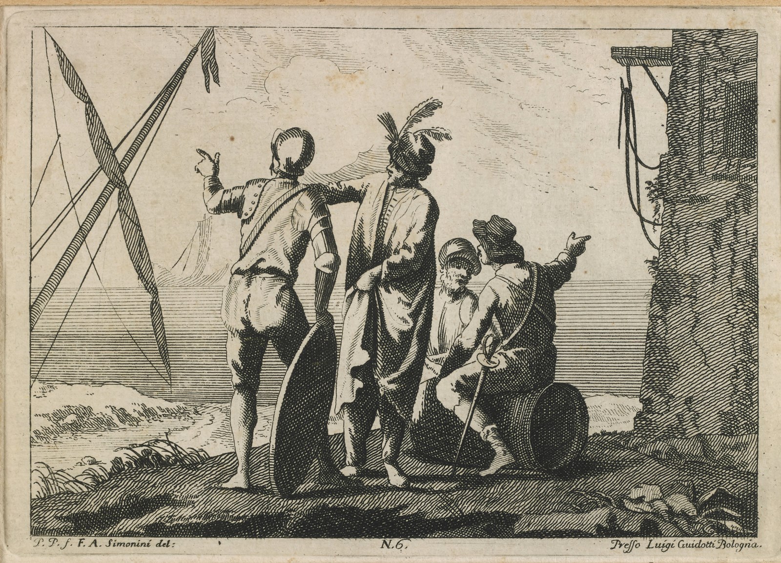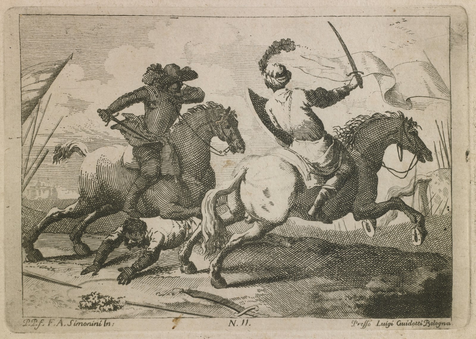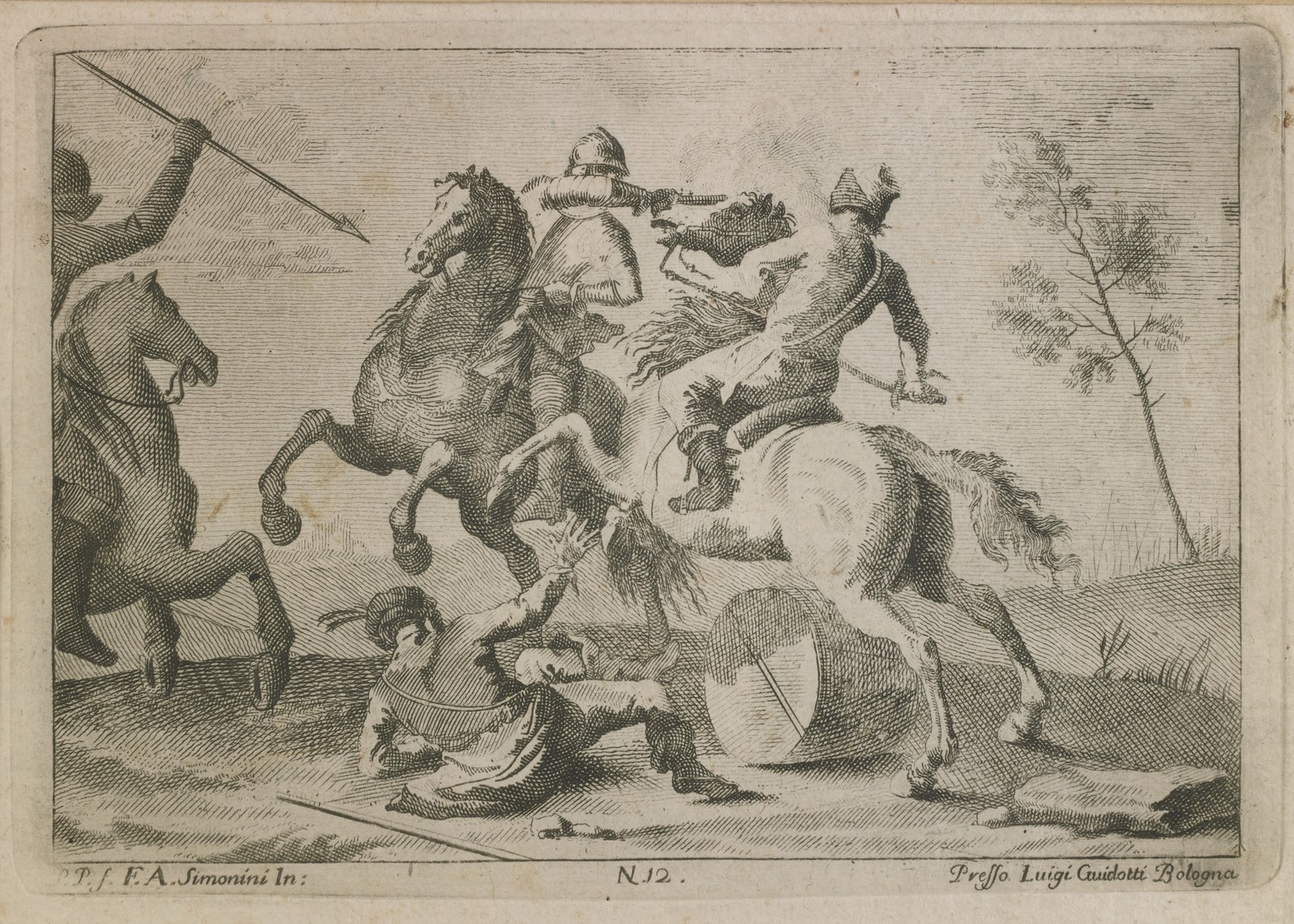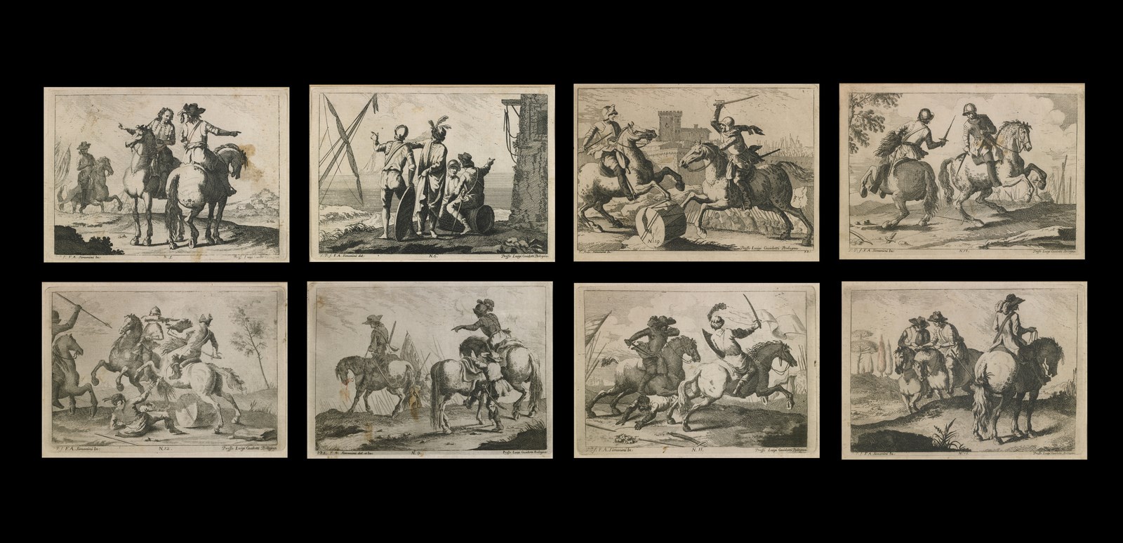 SIMONINI FRANCESCO (1686 - 1753) - Gruppo di otto incisioni raffiguranti scene di genere e di battaglia.