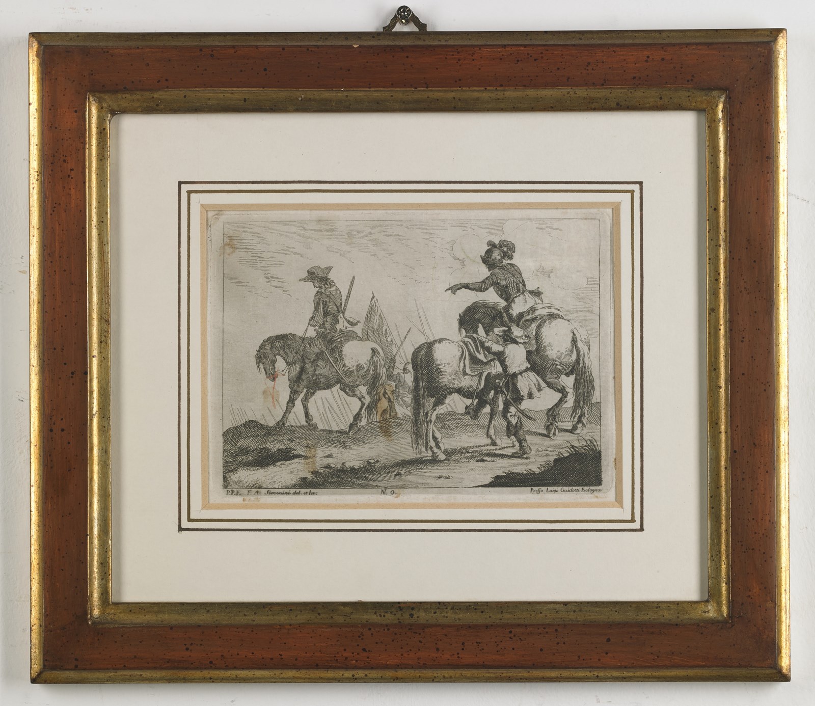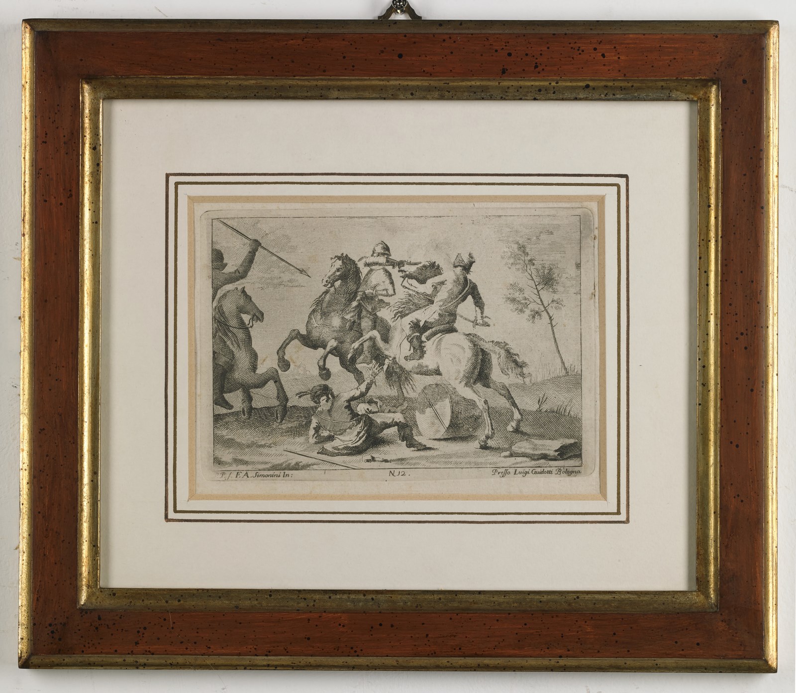 SIMONINI FRANCESCO (1686 - 1753) Gruppo di otto incisioni raffiguranti scene di genere e di battaglia. . Cm 28,00 x 23,00. 11.5x17.5 cm. . Cornice presente
