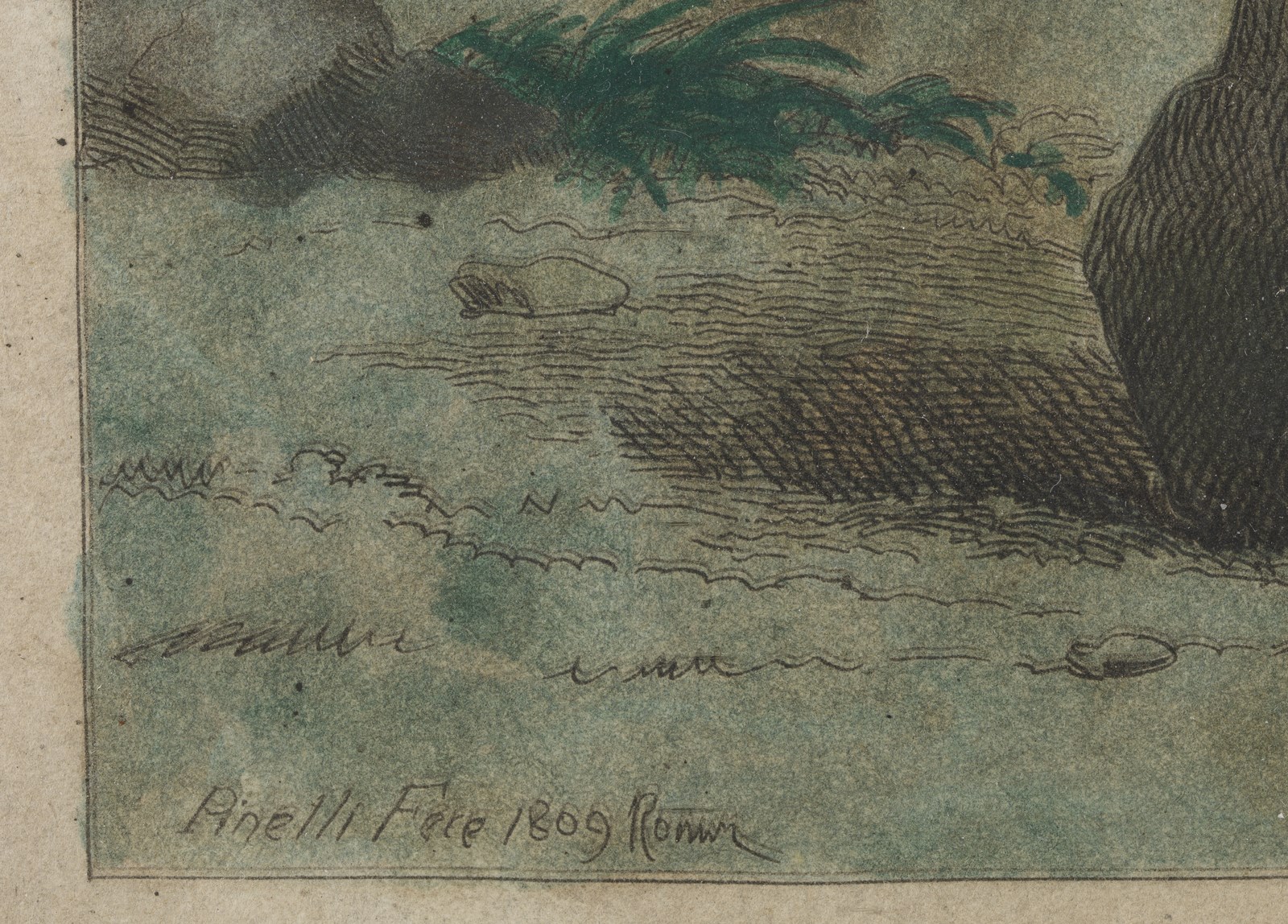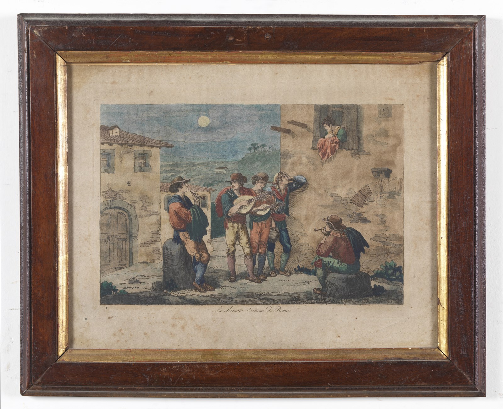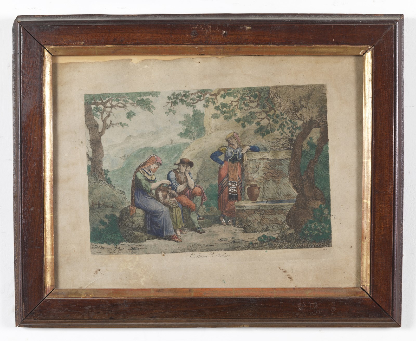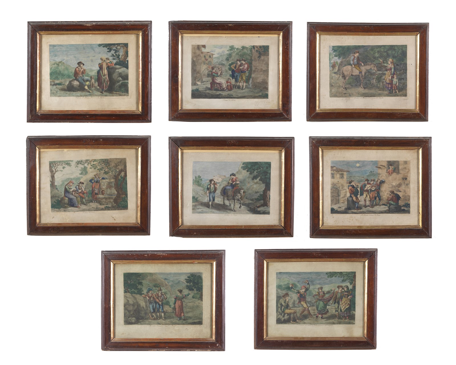 PINELLI BARTOLOMEO (1781 - 1835) Gruppo di otto incisioni raffiguranti personaggi in costume. . . Cm 38,50 x 30,00. Firmati e datati 1809. Difetti. Cornice presente