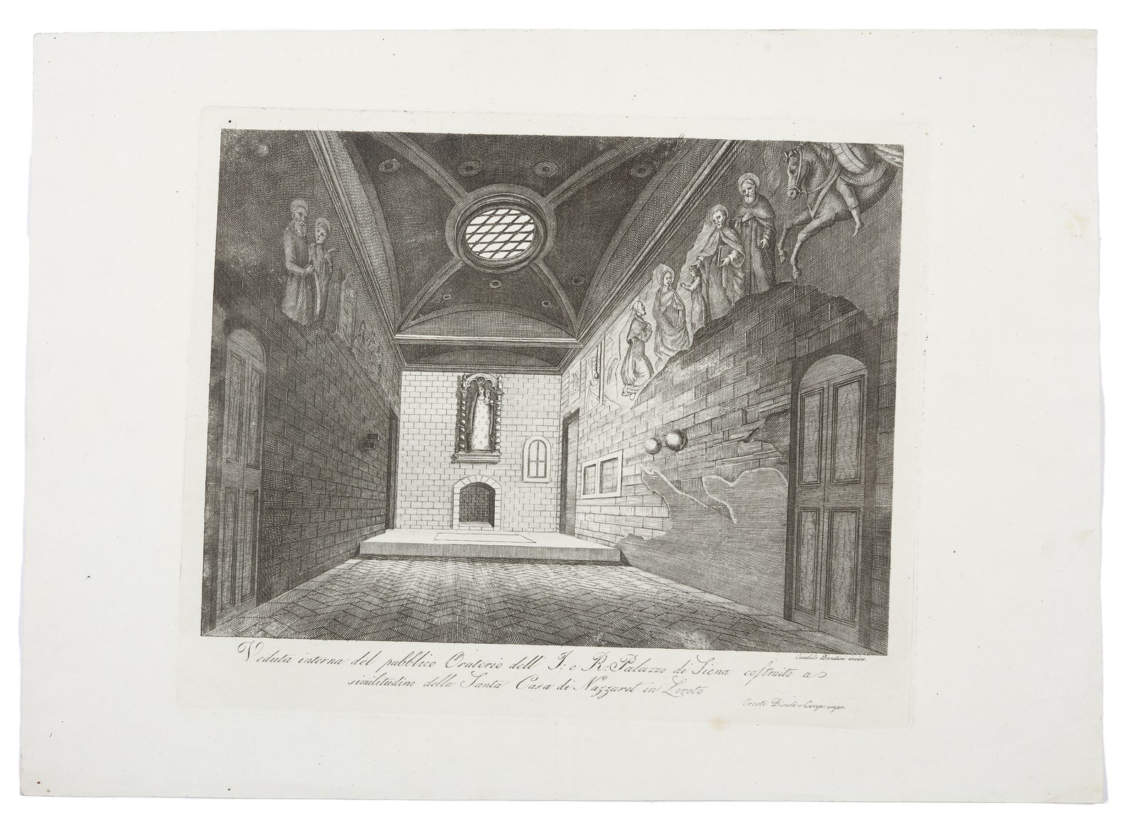 BANDINI CANDIDO (1796 - 1837) - Veduta interna del pubblico Oratorio del Real Palazzo di Siena costruito a similitudine della Santa Casa di Nazzaret in Loreto. .