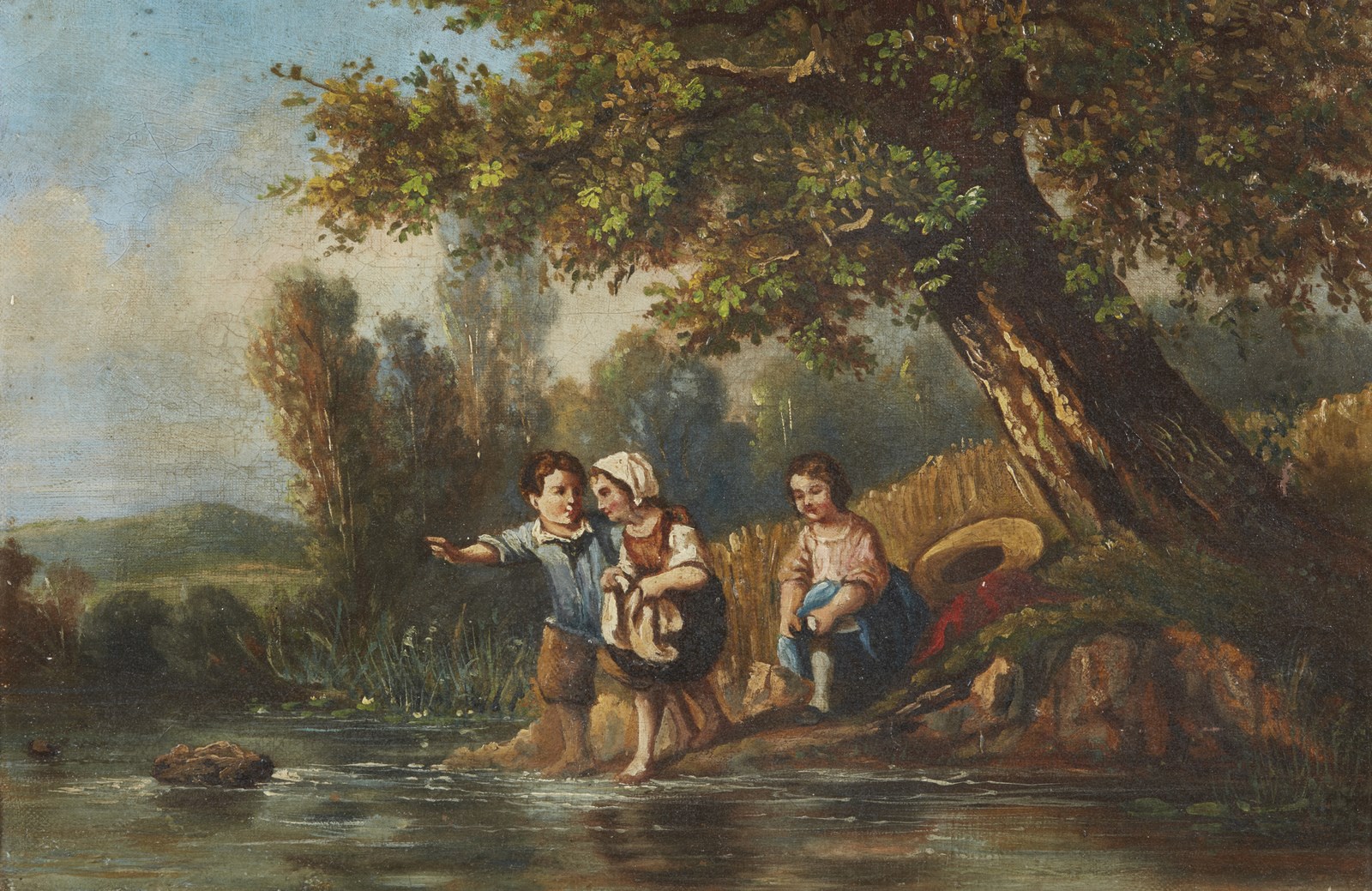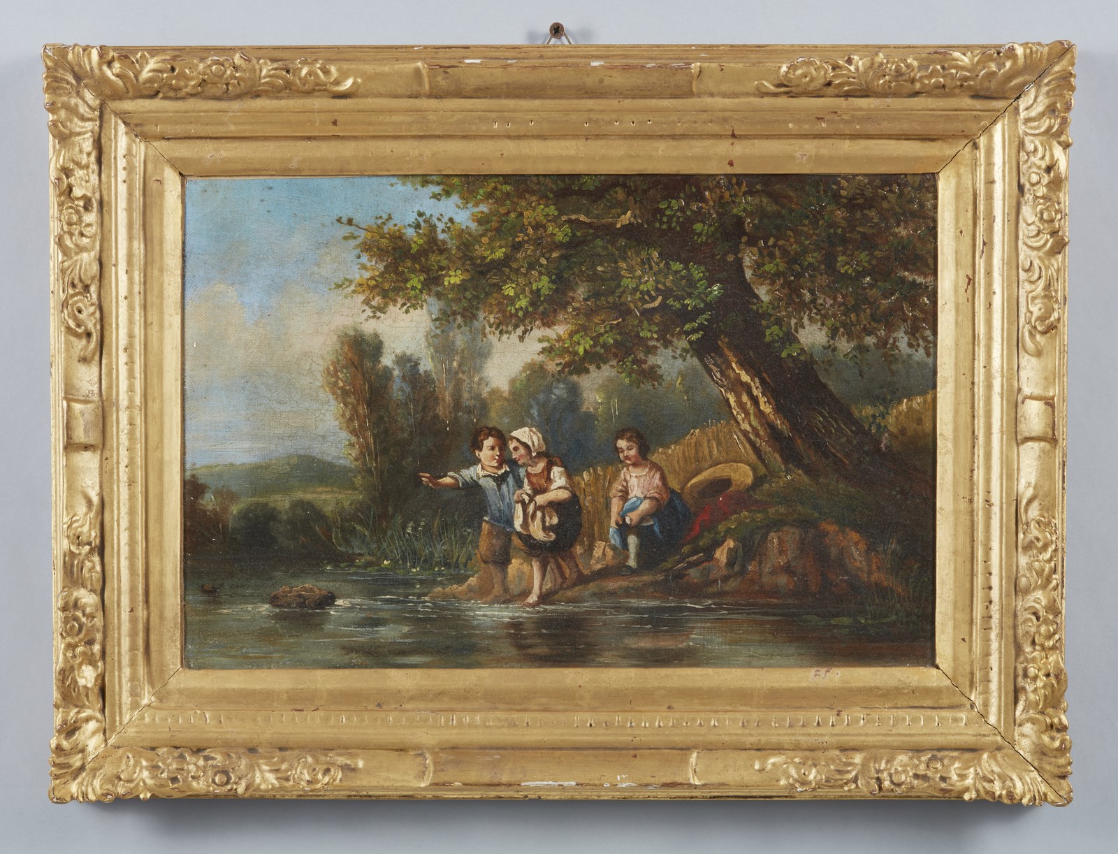 ARTISTA FRANCESE DEL XVIII SECOLO Scena pastorale. . Olio su tela . Cm 41,00 x 27,50. . Cornice presente