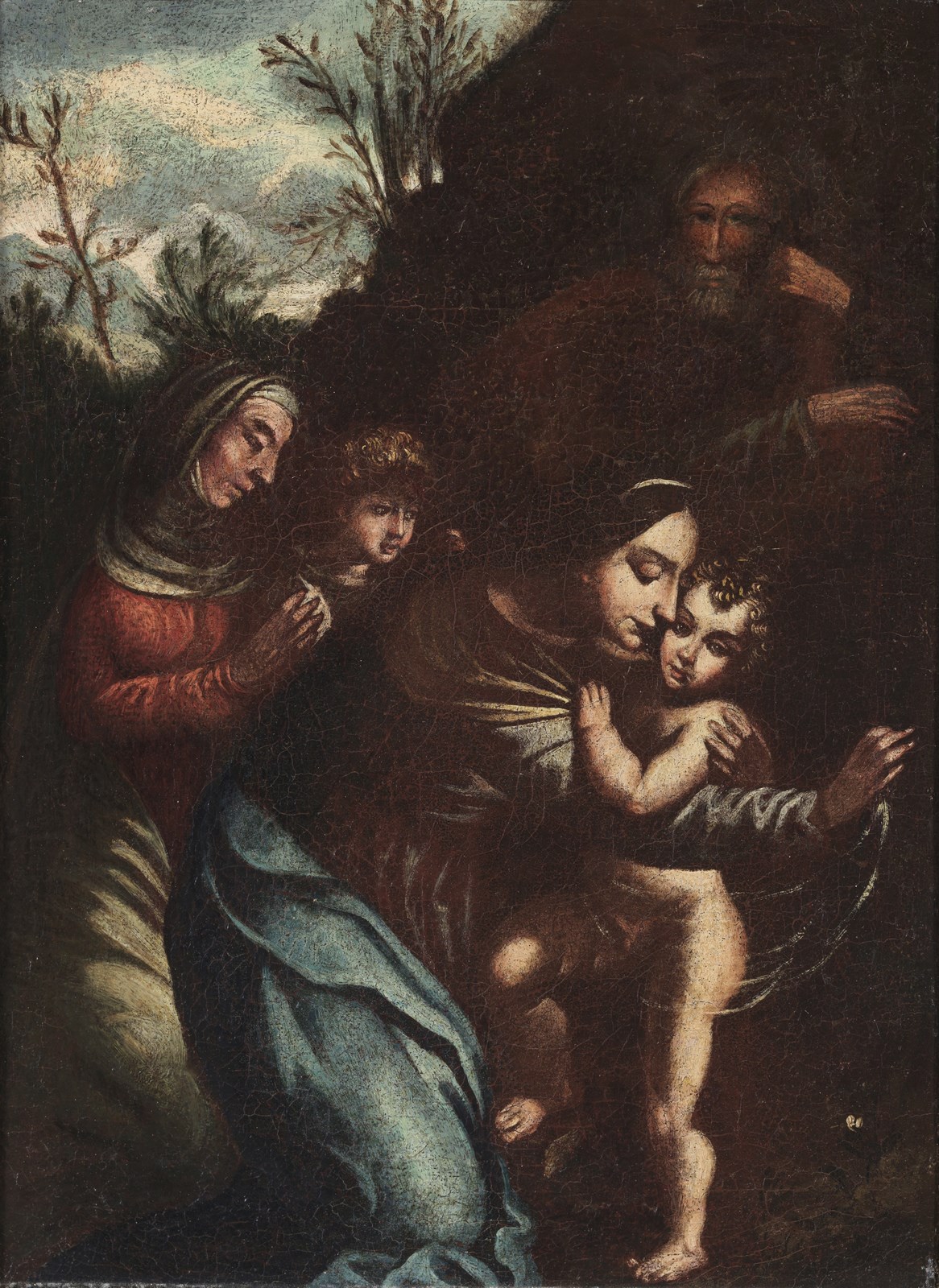ARTISTA DEL XVII SECOLO - Madonna con bambino, San Giuseppe, San Giovannino e Santa Elisabetta. .